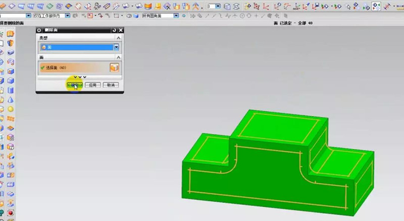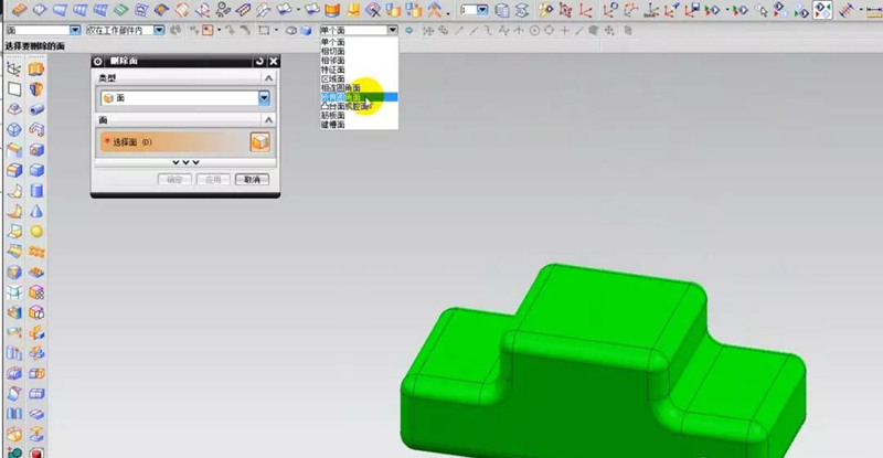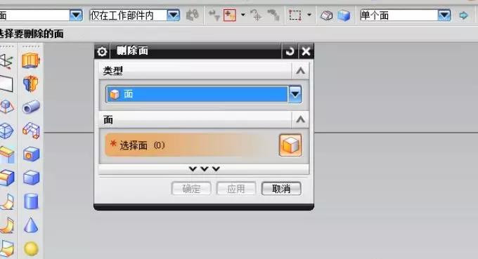 这时,我们可以使用几何过滤器进行方便快捷操作,首先还是点击删除面。学数控、学设计请加陈老师微信:13112555589