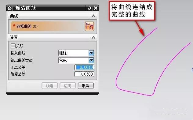 不想从事底层工作,想摆脱现状,投影出最大外形线后,用连接曲线将曲线连接起来,如果中间有断点,可以用曲线的编缉命令修改后连接起来,如下图: