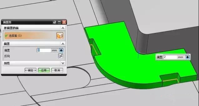 步骤二:一般处理办法是选择先把爆炸点处去除,再偏置上来,最后再处理去除部分。学UG、学设计请加陈老师微信:13112555589
